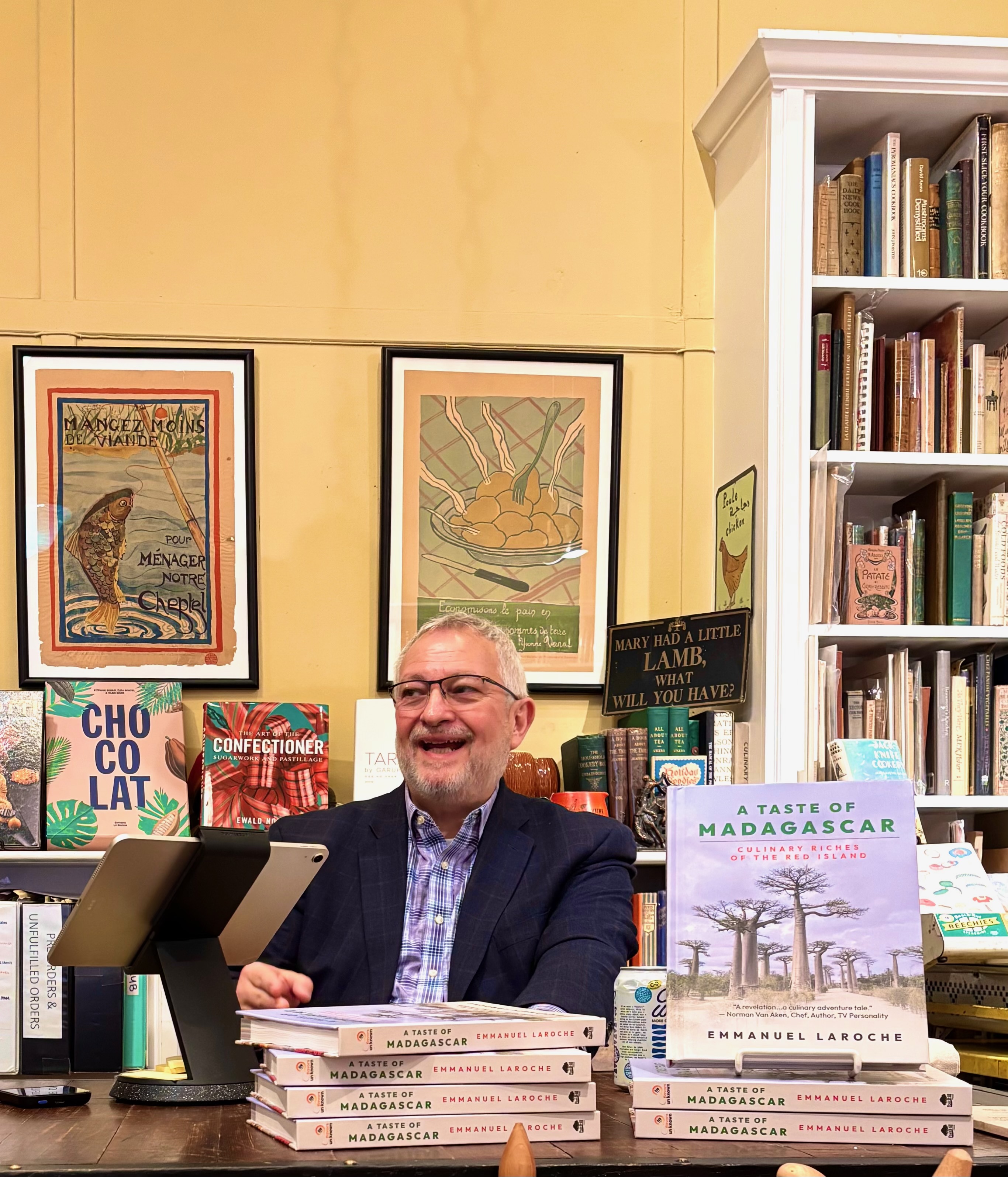 Emmanuel Laroche, author of A Taste of Madagascar: Culinary Riches of the Red Island (Post Hill Press), kicked off his tour of independent culinary bookstores with an appearance at Omnivore Books on Food in San Francisco, Calif.