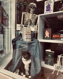 "Page Turner, Miss Ogyny's Worst Nightmare (they/them) and Ribellion are holding down the Halloween window," Card Carrying Books & Gifts in Corning, N.Y., posted on Facebook. "Miss Ogyny's Worst Nightmare is reading The Echo Machine--because obviously they love a good horror story about politics. Come check out our spooky Halloween window display--and maybe pick up something to read while democracy still stands."