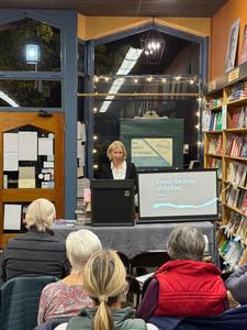 Horseshoe crab advocates turned out in force at Water Street Bookstore in Exeter, N.H., for Caroline Sutton and her new book, Eyes in the Soles of My Feet: From Horseshoe Crabs to Sycamores, Exploring Hidden Connections to the Natural World (Schaffner Press). The event was co-sponsored by Great Bay Stewards, a nonprofit whose mission is the long-term protection and conservation of the nearby Great Bay estuarine system by supporting education, land protection, research and stewardship. The Great Bay is home to endangered horseshoe crabs that are monitored by scientists and volunteers. Water Street donated a portion of the evening's proceeds to Great Bay Stewards.