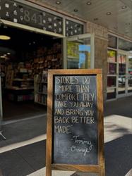 "It's an ideal autumn day in the Short North! Come find the next story to take you away... and then take you to the nearest coffee shop," Prologue Bookshop in Columbus, Ohio, advised while sharing a photo of the shop's latest, quotable sidewalk chalkboard message: "Stories do more than comfort. They take you away and bring you back better made." --Tommy Orange, Wandering Stars