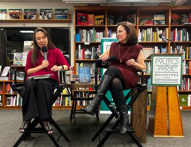 Author and former broadcast news producer Christina Kovac (r.) celebrated the release of her thriller Watch Us Fall (Simon & Schuster) at Politics and Prose, Washington, D.C., where she was in conversation with author Angie Kim (l.).