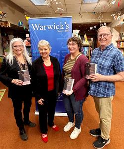 Warwick's, La Jolla, Calif., hosted the launch event for Janet Kintner's memoir, A Judge’s Tale: A Trailblazer Fights for Her Place on the Bench (She Writes Press), attended by more than 100 people. Pictured: Kintner (second from left) with Warwick's staffers Irene McCormack, Irene Deniston, and John Beaudette.