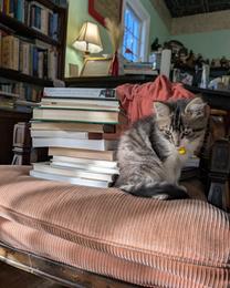 The Author Shoppe in Hattiesburg, Miss., shared a pic of bookseller cat Teddy and "that look you give when daytime Mama (Amy) filled your favorite chair with books."