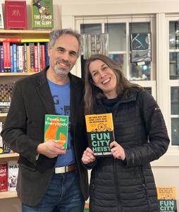 Authors (and husband and wife) Michael Kardos and Catherine Pierce celebrated the launch of their books together at Farley's Bookshop in New Hope, Pa. Two-time Pushcart Prize-winner Kardos's book is the crime caper Fun City Heist (Severn House), and former Poet Laureate of Mississippi Pierce's is the essay collection Foxes for Everybody: Twenty-Four Hours of Early Motherhood (Northwestern University Press). The couple served as each other's conversation partner for the event, and Farley's offered local cider to set a cozy tone for the chilly evening.