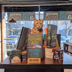 Analog Books, Lethbridge, Alb., Canada, shared a pic of the shop's bookseller cat in a pawselling mood, noting: "You should think about your future, boy. The more treats you give me, the brighter your prospects will be. Overlord Copper declares today is a great day to pick up a new book!"