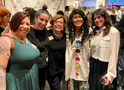 Above, from left: Siân Gaetano, children's and YA editor, Shelf Awareness; Sara DiSalvo, director of publicity, Candlewick Press, Holiday House, and Peachtree Publishing; Terry Borzumato-Greenberg, children's book marketing executive; and authors Yuyi Morales and Laura Vaccaro Seeger.
