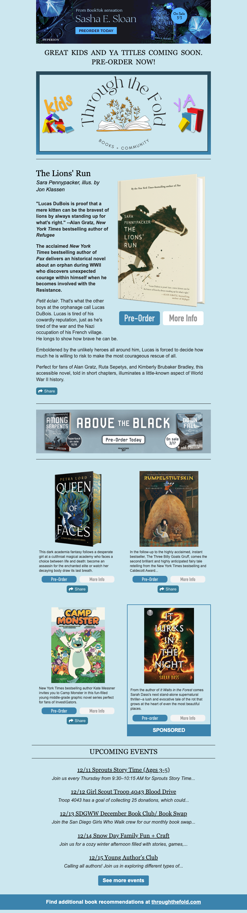 Based just north of Seattle, the mobile bookstore brings bookish events and community-centered experiences to the Greater Seattle, Tacoma, Everett, and Eastside areas. With a goal of creating welcoming, low-pressure spaces where readers can gather, discover new stories, and connect, Hoffman said "the response so far has reinforced something I know many booksellers are seeing: readers are seeking connection just as much as they're seeking books."