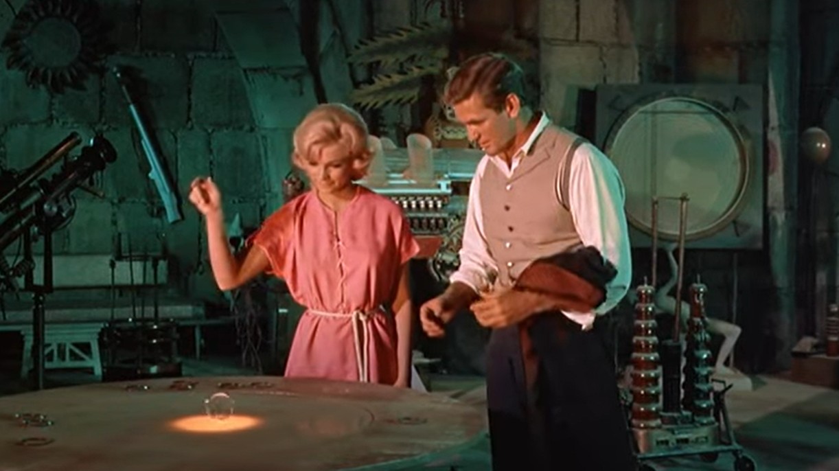 Weena takes a ring from him, places it on its edge like a coin, and spins it on the smooth surface of a stone table. A disembodied voice fills the hall: "My name is of no consequence. The important thing you should know is that I am the last who remembers...." Talking rings don't exist in H.G. Wells's 19th-century novella. They were an imagined invention from the far distant future invented for a mid-20th century movie, but the concept already seems technologically antiquated.