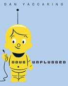Each morning young Doug's parents plug him in so he can download fascinating facts and lessons. One day, after his parents leave, something catches Doug's eye outside his window and, full of curiosity, Doug pulls his plug so he can explore his city with his jetpack blasting, and learn about the world first hand. Cement, for instance, is squishy, and flowers peek from the sidewalk cracks. Best of all, Doug discovers the concept of play. A boy in the park teaches Doug hide-and-seek, tag and other games. Through their play, Doug discovers the joy of having a friend. After lots of fun in the park, Doug's friend feels lost when he cannot see his mom or dad. Doug helps his friend reunite with his parents, and then begins thinking about his own parents, and all the new things he'd like to share with them. The best lesson of the day: to show parents that you love them, give them a hug--which Doug rushes home to share with his own parents.