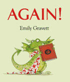 Each time the adult reads the story, the "AGAIN!" uttered by the child is more emphatic. The action within the storybook about Cedric changes as the adult attempts to put the young dragon to sleep, and the child's refrain grows in size and emphasis, "AGAIN! AGAIN!" The now bright-red child dragon (literally) burns a hole in the back of the book readers hold in their hands. Children will delight in the topsy turvy role-playing Emily Gravett (Wolf Won't Bite!) once again exhibits in her playful metafiction. --Jennifer M. Brown, children's editor, Shelf Awareness