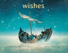 The child looks on while adult family members prepare for departure. As the grandfather digs up a buried case, "the night wished it was quieter." Three women in the kitchen pack food in a bag that "wished it was deeper." When they wake younger siblings, "the dream wished it was longer." And when it's time for the travelers to leave beloved family members behind, "the clock wished it was slower." The mother and young children walk a long path and board a packed boat to ride upon a sea that "wished it was calmer." The sun beats down, "the heart wished it was stronger" and "home wished it was closer." Finally, a larger boat appears, bringing with it hope for a future filled with kinder wishes.