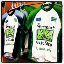 Items only to be found at the Vermont Book Shop are cycling jerseys emblazoned with the store name, available in men's and women's sizes and a variety of styles. "It's where the other part of my life touches my work," said Dayton, an avid road biker. (Area novelist Chris Bohjalian's wife bought him a jersey.)