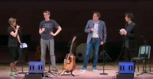 There's no wait for the VlogBrothers to post a video. We get to see them converse, live. The audience is eager to participate. "Yeah, and I'm gonna say, 'Carnegie Hall,' and everybody's gonna stomp their feet," says Hank, then sings: "Cause when the people stomp their feet, it makes me feel complete... because these feet are at Carnegie Hall." The Hall vibrates like a subway train is rumbling underneath.