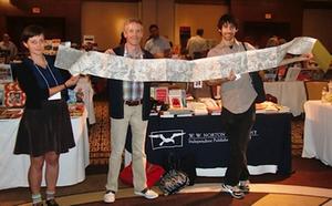 Norton rep Joe Murphy showing off The Great War by Joe Sacco, with a little help from Jenn Wittle and Arlo Klahr from Skylight Books. |