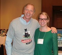 Penguin rep Tom Benton (sporting a California Bookstore Day T-shirt) on the floor with Dorling Kindersly rep Carol Stokke. |