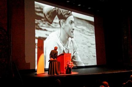 Here, Brown narrates a clip from Leni Riefenstahl's film Olympia, showing the final 8-oar race at the Olympics in Berlin in 1936.
