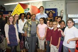 | Change for Kids executive director Colin Smith, principal of P.S. 81 Cheryl Ault-Barker, Change for Kids staff, HarperCollins volunteers and P.S. 81 honor roll students. | |