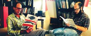 | Kyle Harvey and Danny Rosen, owners of Lithic Press | |