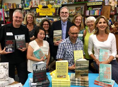 Excelsior Bay Books, Excelsior, Minn., hosted authors Frank Bures, Brian Freeman, Kao Kalia Yang and Larry Watson Monday night for a program called Literature Lovers' Night Out. The event attracted 65 customers. Pictured with the authors are store owners Ann Nye and Ellie Temple, and book store staffers Pamela Klinger-Horn, Debra Larsson and Ann Woodbeck.