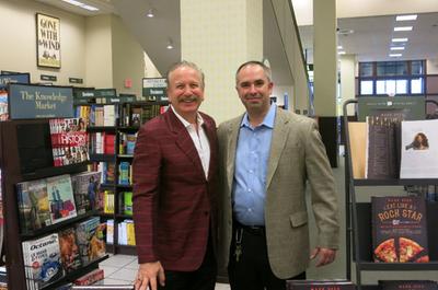 Mark Bego (left) dishes about Eat Like a Rock Star: More Than 100 Recipes from Rock 'n' Roll's Greatest (Skyhorse) with Sean Sabini during a visit to Barnes & Noble in Hackensack, N.J.