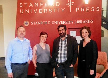 On Friday, Stanford University Press hosted Jeff Deutsch, director of the Seminary Co-op Bookstores in Chicago, for the press's first visiting bookseller program. Deutsch spoke with staff from production, sales, marketing and acquisitions about publishing from a bookseller's point of view. Pictured: Alan Harvey, director of Stanford University Press; Kate Templar, sales and exhibits manager; Jeff Deutsch; and Kate Wahl, publishing director, editor-in-chief.
