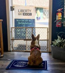 Posted on Facebook by Liberty Bay Books, Poulsbo, Wash.: "While mom filled online orders at the store Fiona watched forlornly out the door, anxious for the day when we can all meet again!"