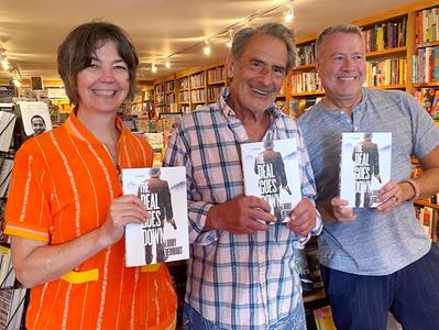 The Golden Notebook in Woodstock, N.Y., hosted the launch signing for Larry Beinhart's new novel, The Deal Goes Down (Melville House). Pictured: Beinhart flanked by Golden Notebook owners Jackie Kellachan and James Conrad.