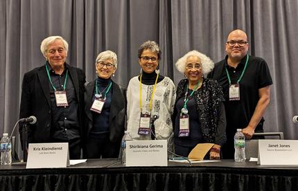 At the Bookstore Resilience: Stories from Venerable Booksellers session, venerable booksellers talked about how their careers started, what motivates them, how to be resilient and effective, and more. From l.: Rick Simonson, Elliott Bay Book Company, Seattle, Wash.; Kris Kleindienst, Left Bank Books, St. Louis, Mo.; Shirikiana Gerima, Sankofa Video and Books, Washington, D.C.; Janet Jones, Source Booksellers, Detroit, Mich.; and Brein Lopez, Children's Book World, Los Angeles, Calif.