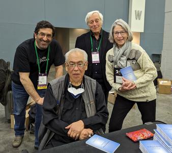 In April, Ode Books will debut with renowned City Lights bookseller Paul Yamazaki's Reading the Room: A Bookseller's Tale. Pictured: Yamazaki surrounded by (from l.) Jeff Deutsch, executive director of the Seminary Co-op Bookstores and co-publisher of Ode Books; Rick Simonson, Elliott Bay Book Company, Seattle, Wash.; and Cheryl McKeon, Book House of Stuyvesant Plaza, Albany, N.Y.