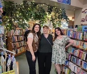 (l.-r.) Katelyn Foutch and Bre Pickens (BookPeople of Moscow, Moscow, Idaho) with Catherine Chapman (Artisans Books and Coffee, Everett, Wash.) at Auntie's Bookstore. |