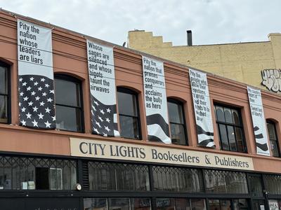 During a week in which the Trump administration announced that federal agents were being sent to the Bay Area, City Lights in San Francisco, Calif., used its ongoing banner series collaboration with San Francisco Print Collective to offer a message of defiance.