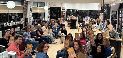 Thunder Road Books in Spring Lake, N.J., hosted a book club discussion with author Lauren Grodstein (center, kneeling) for her novel A Dog in Georgia (Algonquin). Shop pup Martha Mae joined in on the fun.