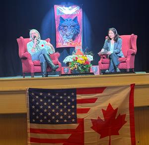 Phoenix Books (in Essex, Burlington, and Rutland, Vt.), with Brome Lake Books in Quebec and the Haskell Free Library and Opera House, hosted author Louise Penny (left, with CBC journalist Mellissa Fung) for the only U.S. stop on her tour for Black Wolf (Minotaur), the 20th book in the Penny canceled all her U.S. tour stops, including a launch at the Kennedy Center, in protest and solidarity with her fellow Canadians. The Haskell Library was chosen because it straddles the U.S./Canadian border, with entrances on both sides. "This is my moment [to resist], and I could, and if I didn't, then shame on me," Penny said. Some 800 people attended two sold-out weekend readings, and more than 450 watched a livestream of Saturday's event. Phoenix Books noted that it was "proud to support Louise, who has done events at our store twice in the past, and honored to promote American-Canadian unity at the Haskell and with Brome Lake Books."