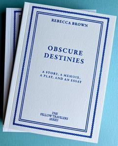 Rebecca Brown is the author of more than a dozen books, including a 1994 novel set during the AIDS crisis called The Gifts of the Body, and a 2021 book of essays about artists and the seasons called You Tell the Stories You Need to Believe. Obscure Destinies (Pilot Editions, November 11, 2025), the 17th book in the Fellow Travelers Series, gathers four distinct forms--a story, a memoir, a play, and an essay--to bear on how the living cope with the dying of people they love. Brown's new memoir, My Animal Kingdom (FrizzLit Editions, December 6, 2025), tells her life story through her relationships with wild and domesticated animals.