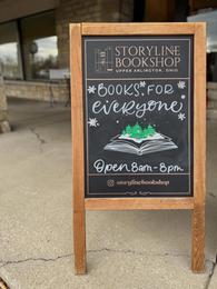 "Books for everyone." That was the holiday season sidewalk chalkboard message in front of Storyline Bookshop, Upper Arlington, Ohio, which noted on Instagram: "A beautiful day for shopping local."