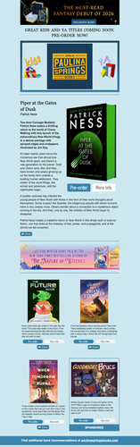 For a sample of the January Kids & YA Pre-Order E-Blast, see this one from Paulina Springs Books, Sisters, Ore.
