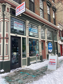 Bridgeside Books, Waterbury, Vt.: "Well, there's a first time for everything! And today was my first time skiing to work."