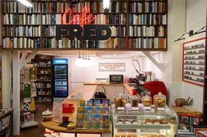 Cafe Fred serves coffee from La Colombe Coffee Roasters, pastries from Ole and Steen, and tea.