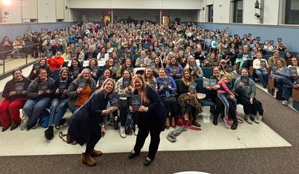 Page 158 Books in Wake Forest, N.C., hosted Kate Quinn (front, left) for her new novel, The Astral Library (HarperCollins). Quinn was in conversation with Laura Beth Victor. (credit: Kelsey Kemp Photography)
