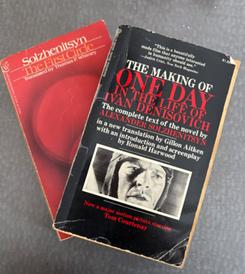Six decades later, a quick inspection of the bookcases in our home (and there are a lot of bookshelves) shows that my MMPB collection has been reduced to just two titles, Aleksandr Solzhenitsyn's The First Circle, translated by Thomas P. Whitney (Bantam, 1969, $4.95); and The Making of One Day in the Life of Ivan Denisovich (Ballantine, 1971, $1.25), translated by Gillon Aitken, with an introduction and screenplay by Ronald Harwood.