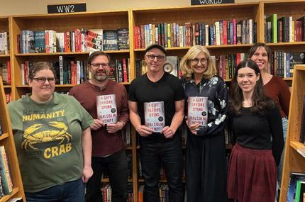 Author Malcolm Kempt (A Gift Before Dying, Crown) and Random House Midwest adult sales rep John Hastie visited a handful of Chicago-area bookstores last week to meet with booksellers and sign stock. The stores included Roscoe Books, Bookends & Beginnings, and Unabridged Bookstore. At The Book Stall, in Winnetka, Ill: (pictured from left) Kari Patch, Mike Wysock, Malcolm Kempt, Stephanie Hochschild, Liz Carter, Caitlin Marz.