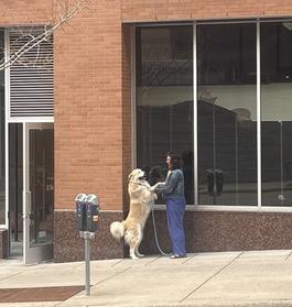 | Owner Molly Fish and Bowie at Lake City's future location | |