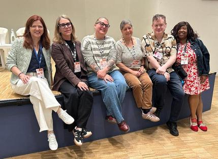 The U.S. contingent at the RISE Bookselling Conference, taking place this week in Venice, Italy: (l.-r.) American Booksellers Association CEO Allison Hill; Jessica Osborne and Melissa Taylor, owners of E. Shaver Booksellers in Savannah, Ga.; Jamie Fiocco, owner of Flyleaf Books, Chapel Hill, N.C.; sweet pea Flaherty, owner of King’s Books in Tacoma, Wash.; and Kimberly Brock, adult book buyer at Joseph Beth Booksellers in Cincinnati, Ohio.