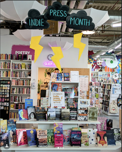 Under the Umbrella marketing and events coordinator Alexa said, "We are so honored to receive this award for the Indie Press Month bookstore display contest! As a queer bookstore, Under the Umbrella deeply appreciates the role that independent and small publishers have played in platforming queer stories... Our store chooses to focus on indie publishers and indie authors in order to uplift marginalized identities, even within the queer community. We see these values reflected in our customers who continue to support indie bookstores in order to get books they can't find in big-box bookstores.... Thank you again for this opportunity to create something fun and engaging for our customers near and far."